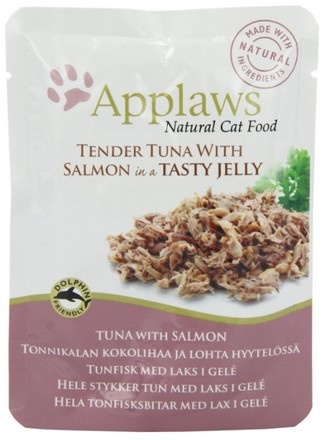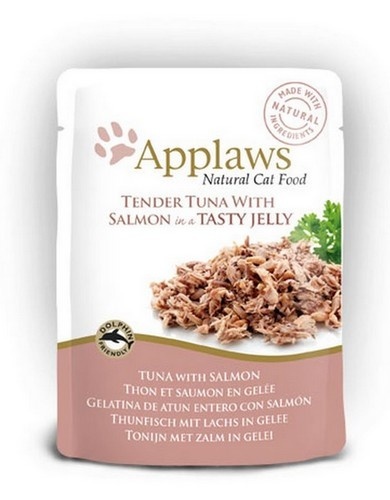 Applaws Tuńczyk z Łososiem, saszetki w galaretce, uzupełniająca karma dla dorosłych kotów, zawiera tylko i wyłącznie wymienione składniki