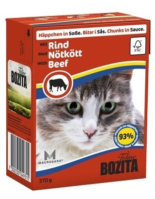 Bozita to naturalna, wysokojakościowa karma mokra dla kotów w każdym wieku. Karmy Bozita są produkowane z najwyższej jakości szwedzkiego mięsa, ryb oraz jaj, są wolne od zbóż, soi, konserwantów. Zawierają tylko 5% tłuszczu oraz wszystkie niezbędne witaminy, taurynę, a także kwasy omega 3.