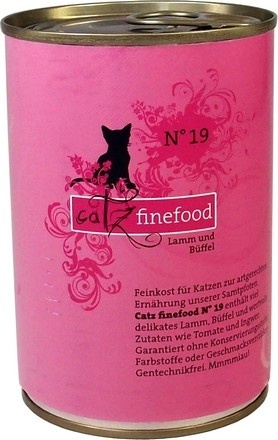 Specjał dla kotów – wartościowa karma dla naszych pupili. Catz finefood N°19 zawiera dużo delikatnej jagnięciny, bawoła oraz wartościowe dodatki, jak pomidory i imbir. Bez konserwantów, barwników i wzmacniaczy smaku. Nie zawiera GMO. Mmmmiau!