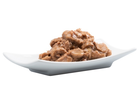Delikatne kawałki, wyselekcjonowane naturalne mięso w postaci odpowiedniej wielkości kąsków w pysznym sosie.