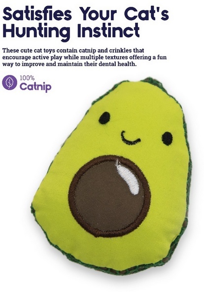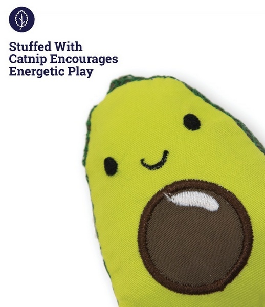 Lil' Avocato to zabawka z materiałem siatkowym, który pomaga w czyszczeniu zębów kotka podczas żucia.
