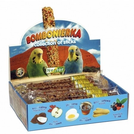 Bombonierka dla małych papug to zestaw 12 kolb w 6 smakach: